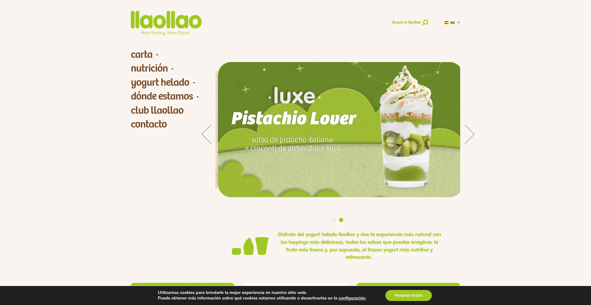 El yogurt helado llaollao es el mĂĄs natural. Disfruta de tu yogurt helado y vive la experiencia mĂĄs natural con los toppings mĂĄs deliciosos