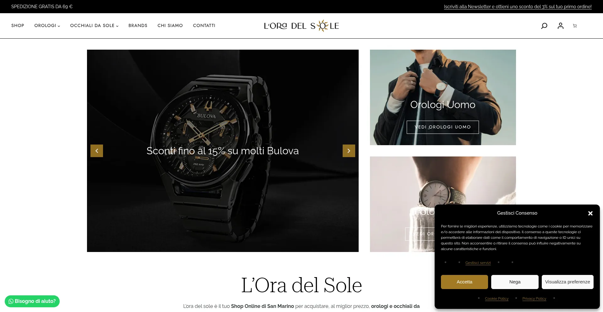 Il nostro negozio a San Marino L'Ora del Sole offre prezzi vantaggiosi su orologi e occhiali da sole, per uomo e donna. Approfittane ora!