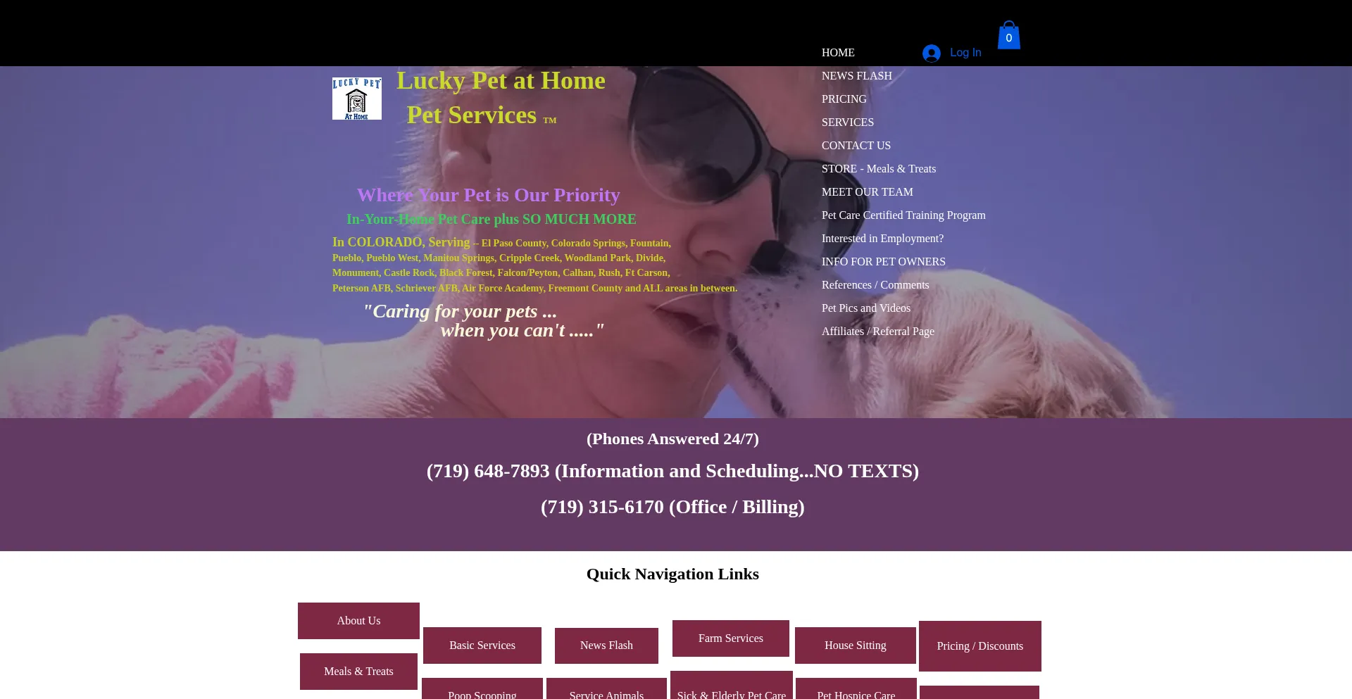 Lucky Pet at Home provides a complete line of Pet Care Services in your home -- for all types of pets -- provided by a staff of trained, caring professionals.