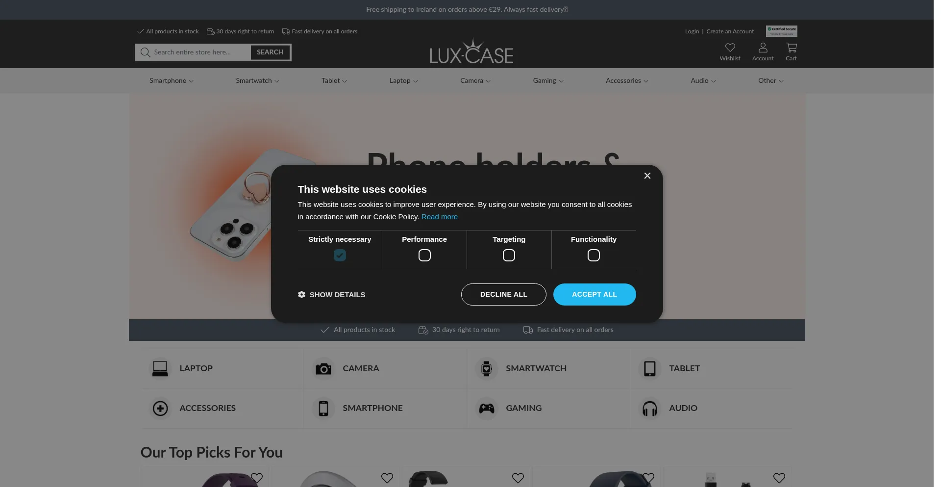 Lux-Case has Ireland's largest range of phone cases, covers, watch bands and other accessories. Buy a new case today and get fast delivery to your mailbox.