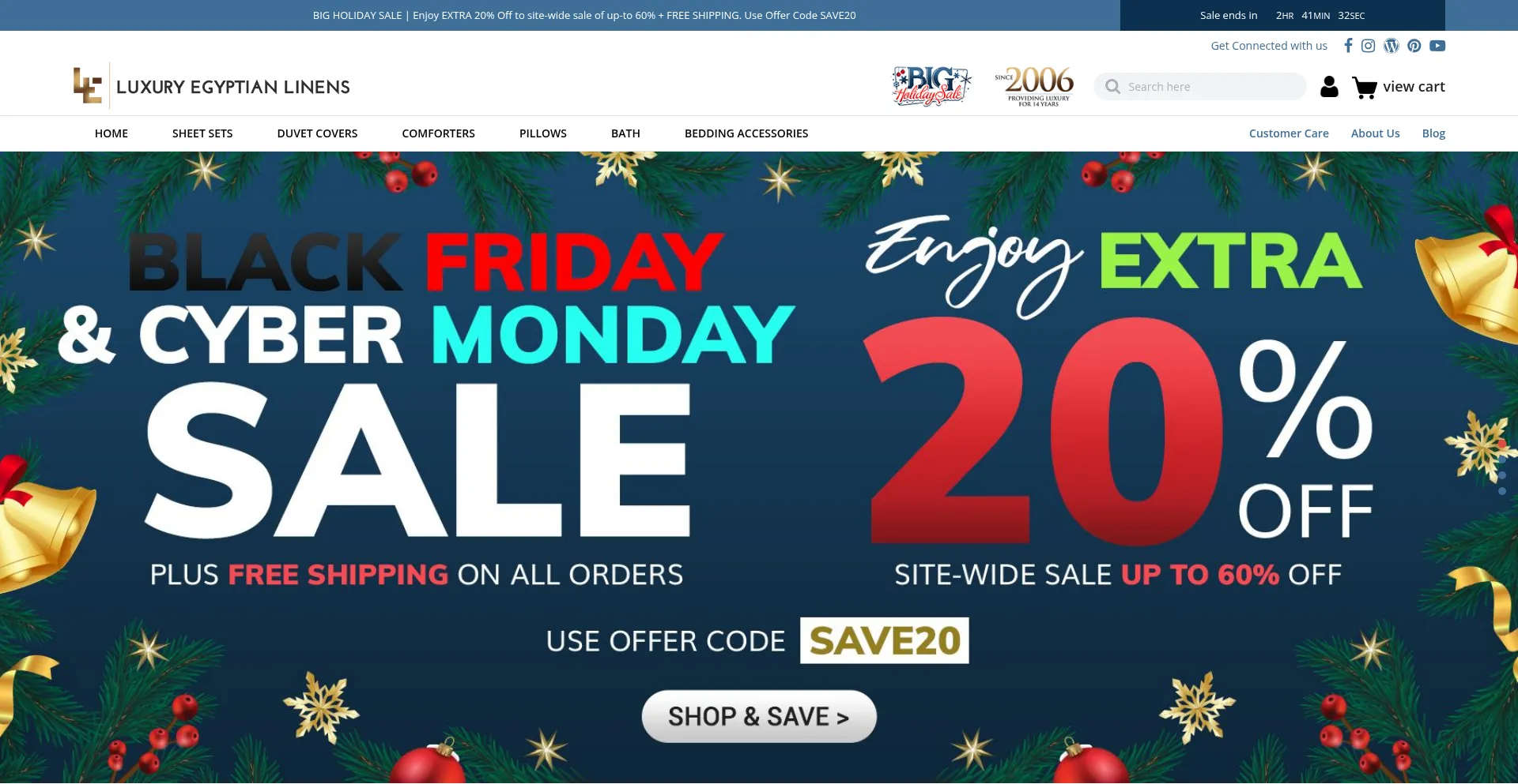 La présence de liens de médias sociaux sur le site web indique que luxuryegyptianlinens.com maintient des comptes officiels sur les médias sociaux, ce qui est un signe positif de crédibilité et d'engagement.