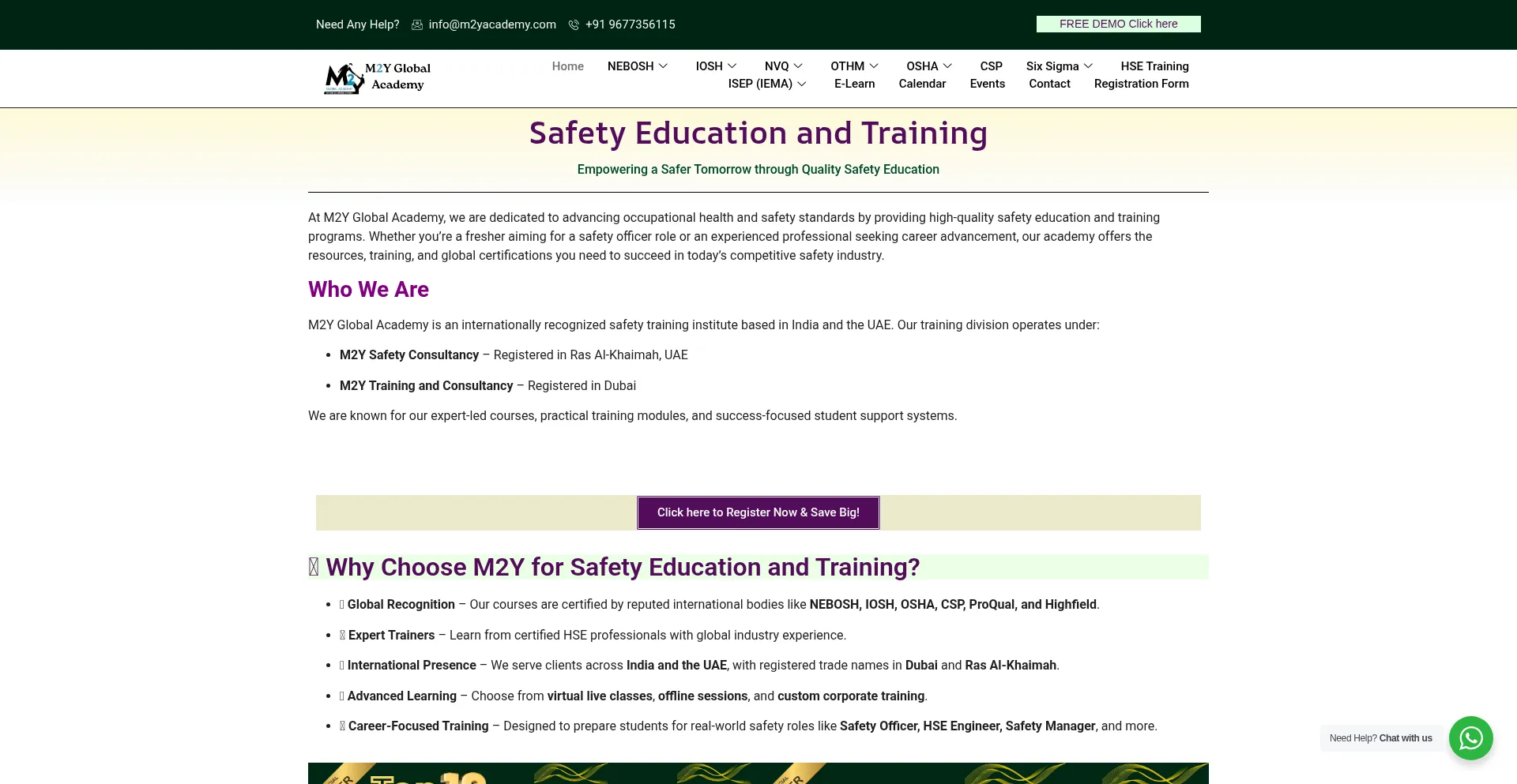 Enhance your career with M2Y’s safety education and training programs. Get certified in NEBOSH, IOSH, OSHA, CSP, and more. Flexible learning options available.