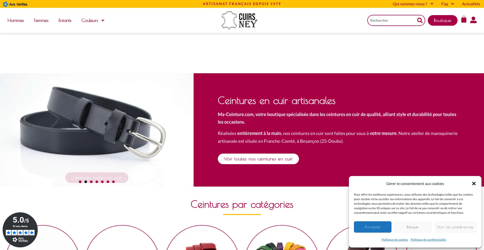 Découvrez des ceintures en cuir sur-mesure, fabriquées artisanalement en France. Personnalisez votre ceinture avec un large choix de couleurs et de boucles. Qualité et savoir...