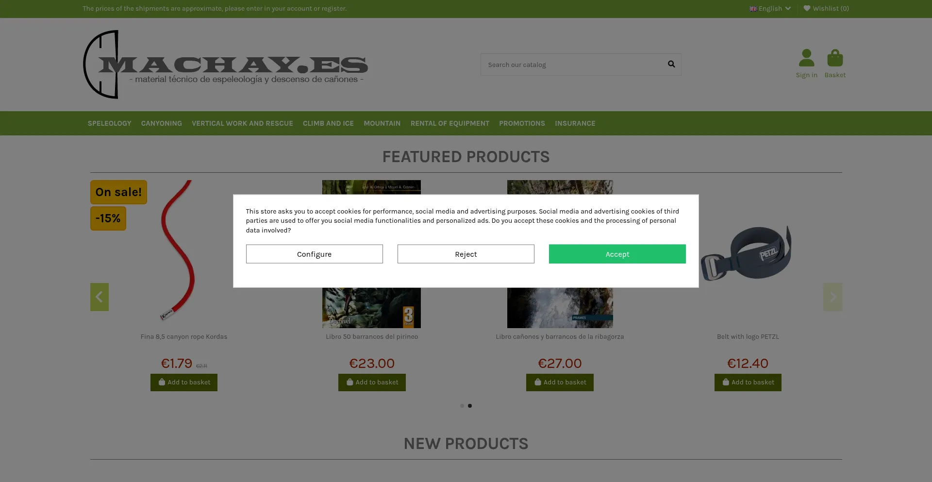 Venta online con tienda física cerca de Madrid especializada en espeleologia, barrancos, montaña, escalada, trabajos en altura, deportes de aventura y rescate. Asesoramiento p...