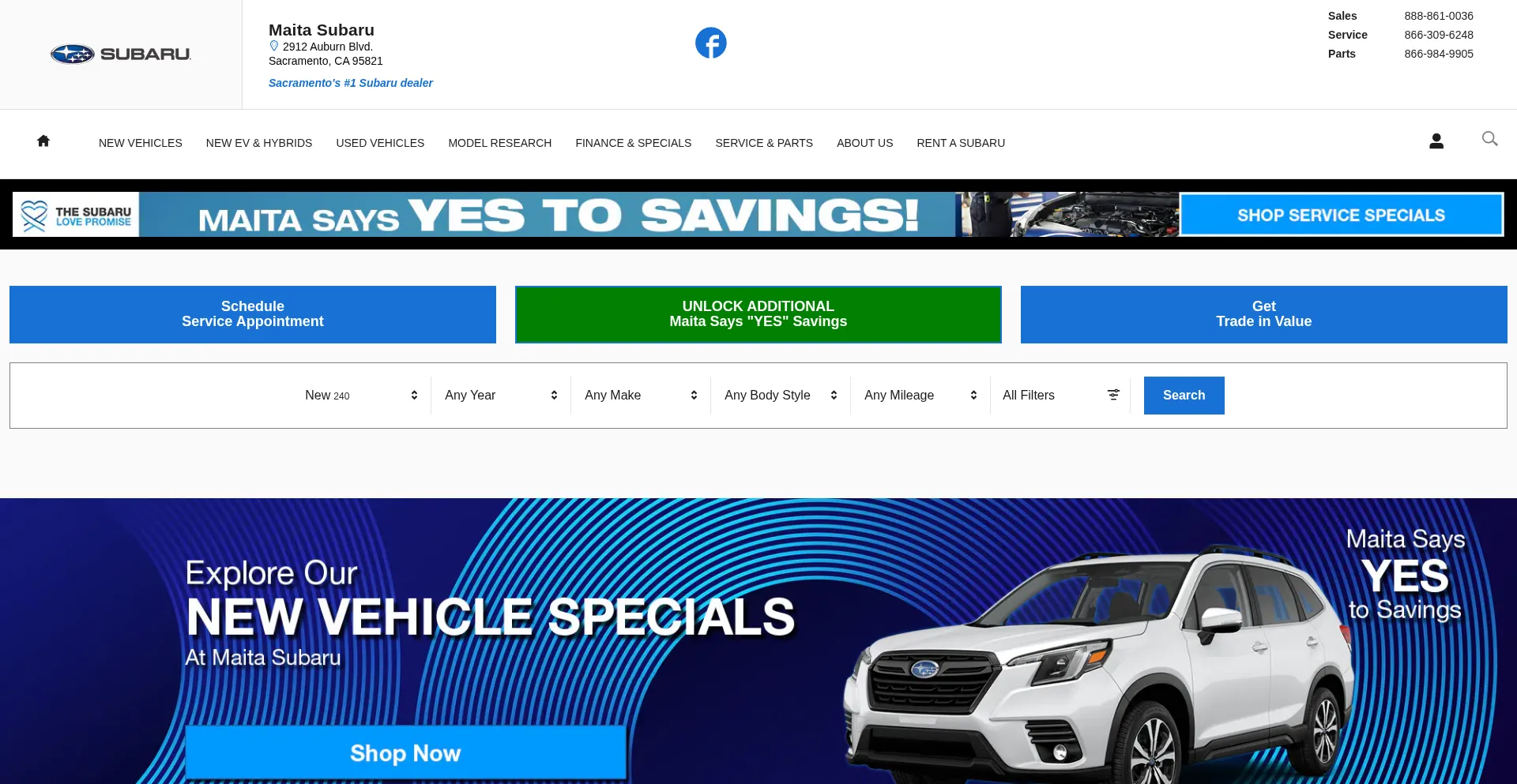 Visit Maita Subaru dealership in Sacramento, CA. Quality new and used cars at unbelievable prices. Near Roseville, Folsom, Davis, Elk Grove, and Rocklin, CA.