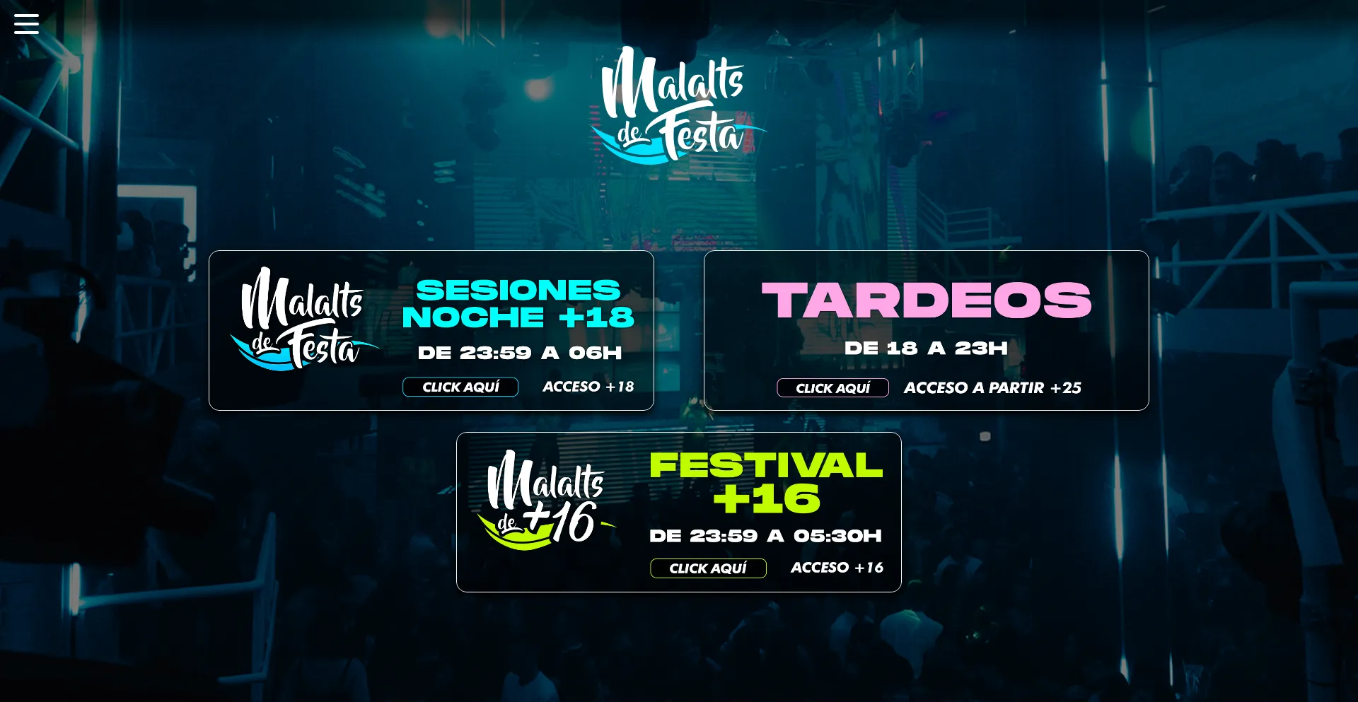 Malalts de Festa dispone de una amplia oferta de fiestas, eventos y marcas de Tardeo, ademĂĄs de una zona VIP en una de las mejores zonas de la discoteca. Viernes, SĂĄbados y Fe...