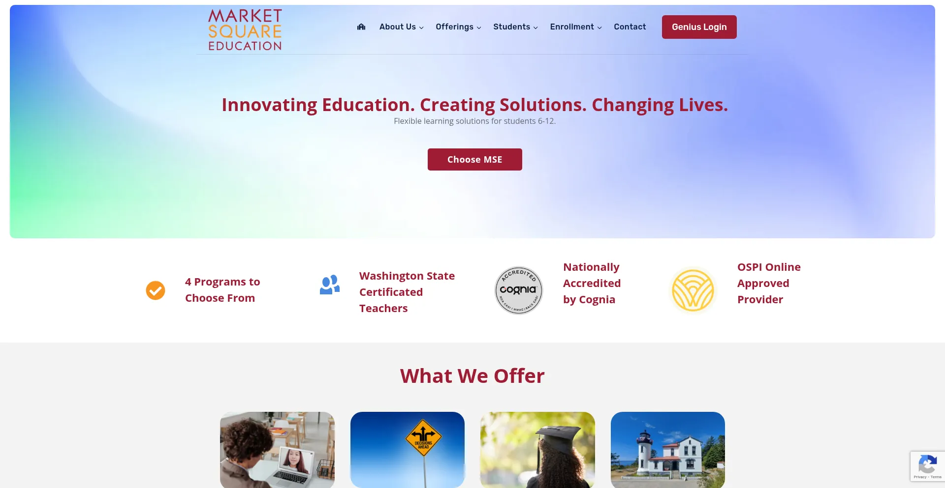 Market Square Education is a year-round, online, comprehensive academic course offering ALE, Credit Recovery and Open Doors. Grades 6-12