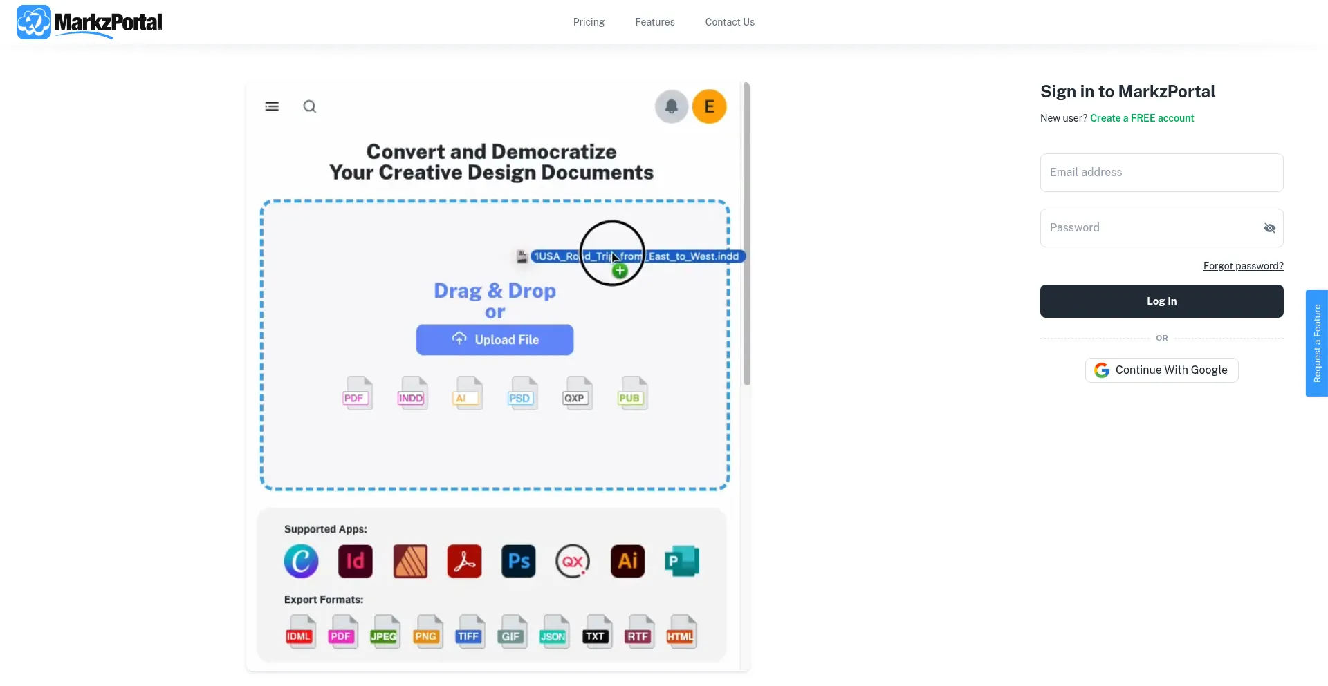 Convert InDesign, PDF, and QuarkXPress files to IDML, PDF, PNG, TIFF, and GIF.
