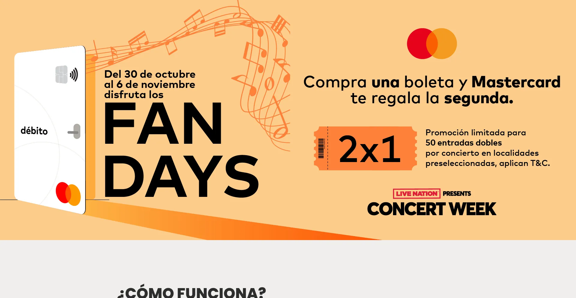 Desde las 10:00 a.m. del 30 de octubre al 6 de noviembre de 2025 quienes compren dos entradas con tarjetas Mastercard Débito o Crédito de los conciertos participantes obtend...