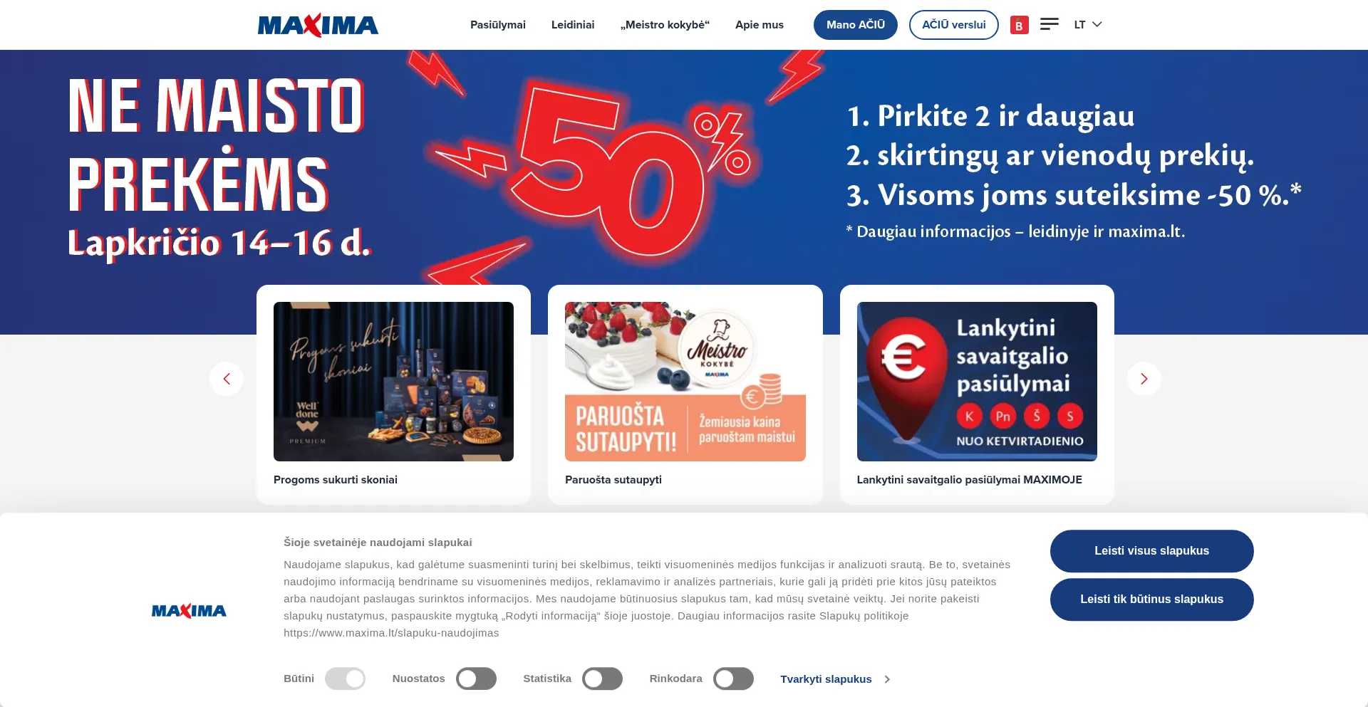 Le site web implémente des mécanismes de consentement aux cookies en conformité avec les réglementations de confidentialité telles que RGPD ou CCPA. Cela démontre que maxima.lt adhÚre aux standards de protection des données et fournit aux utilisateurs un contrÎle sur les pratiques de collecte de données personnelles.