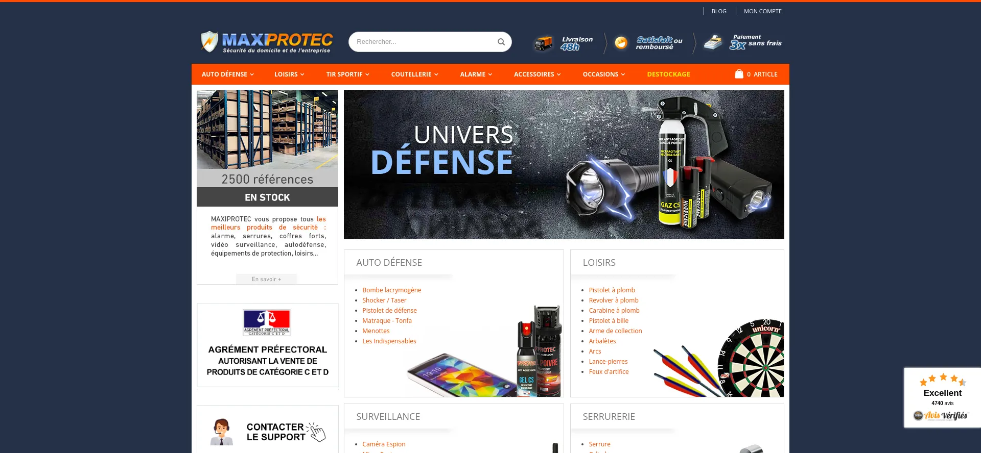 Maxiprotec - Armurerie en ligne, arme de défense, bombe lacrymogÚne, taser, matraque, pistolet d'alarme et armes de tir sportif
