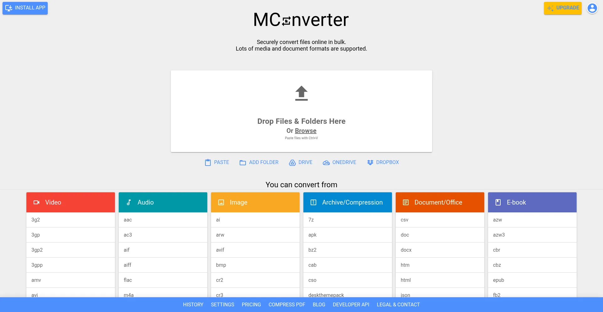 Convert securely video, audio, image, e-book, office & archive files. Bulk convert large files up to 10 GB. Free and easy to use converter.