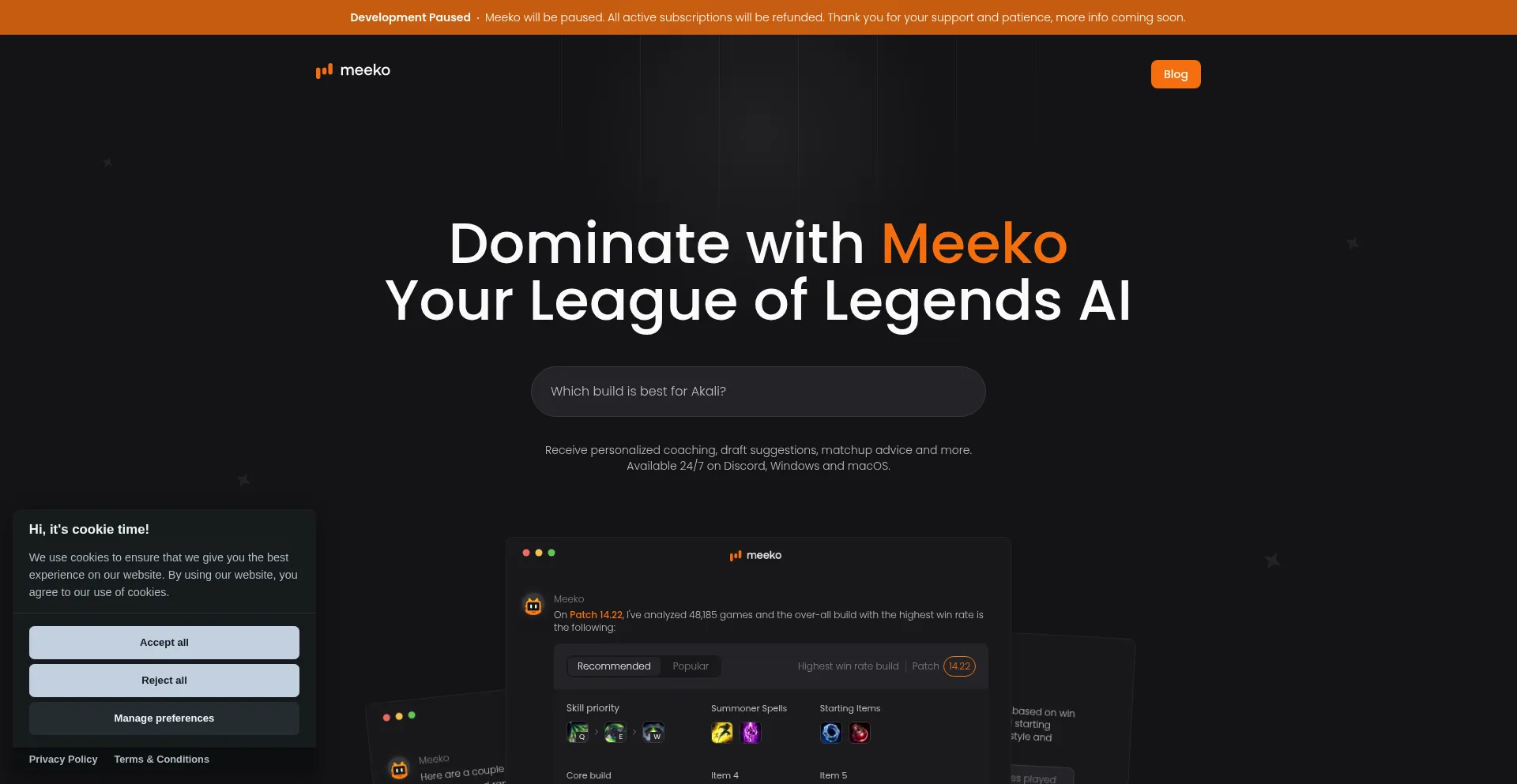 Meet Meeko, your new AI Coach for League of Legends. Receive personalized coaching, draft suggestions, matchup advice and more. Available 24/7 on Discord, Windows and macOS.