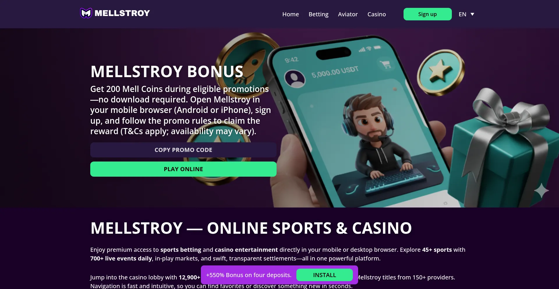 Jump into 12,934 casino games and bet on 45+ sports with 700+ live events daily—all in your mobile or desktop browser.