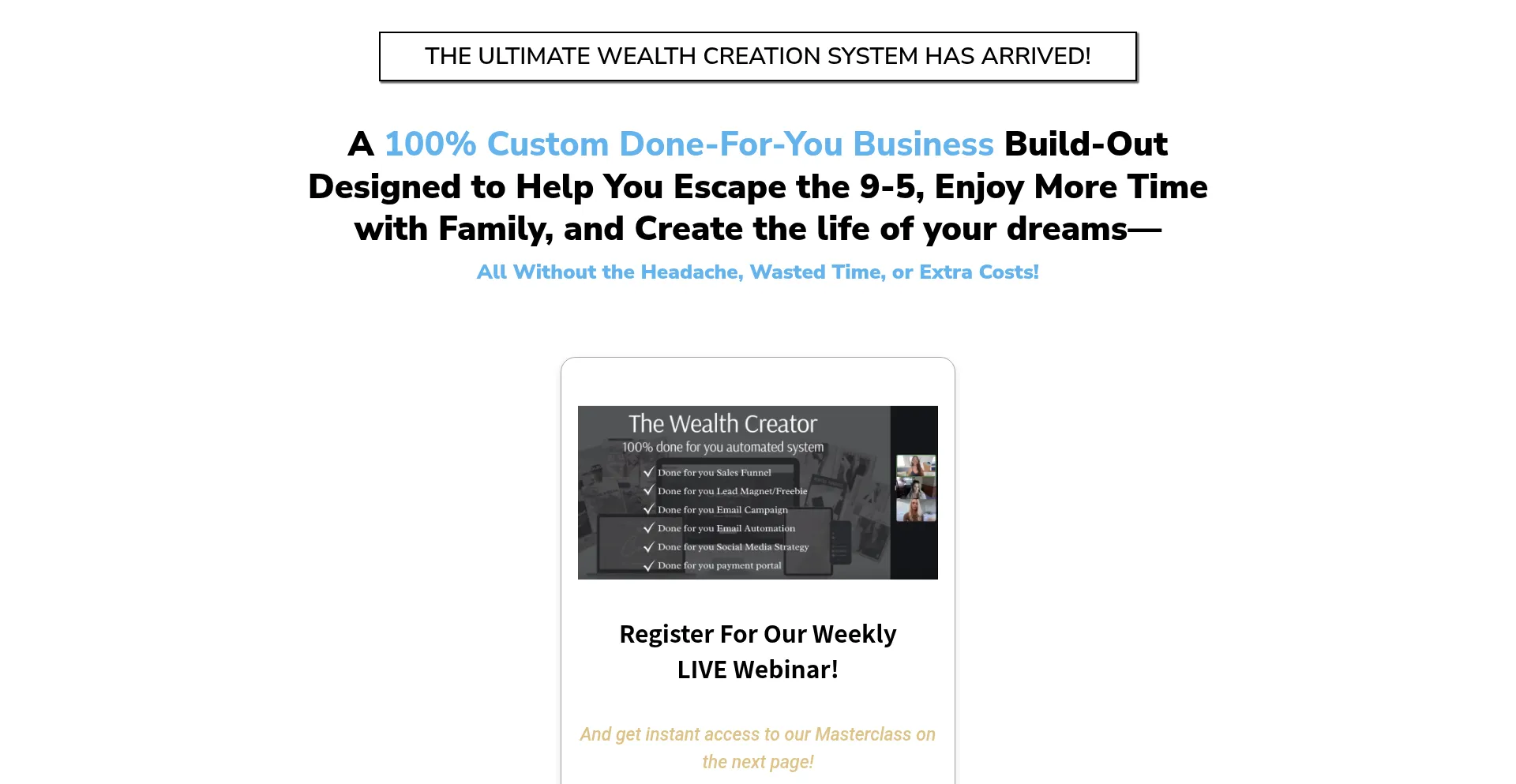 The Ultimate Wealth Creation System – Done-For-You Business Build-Out for Financial Freedom & Passive Income!