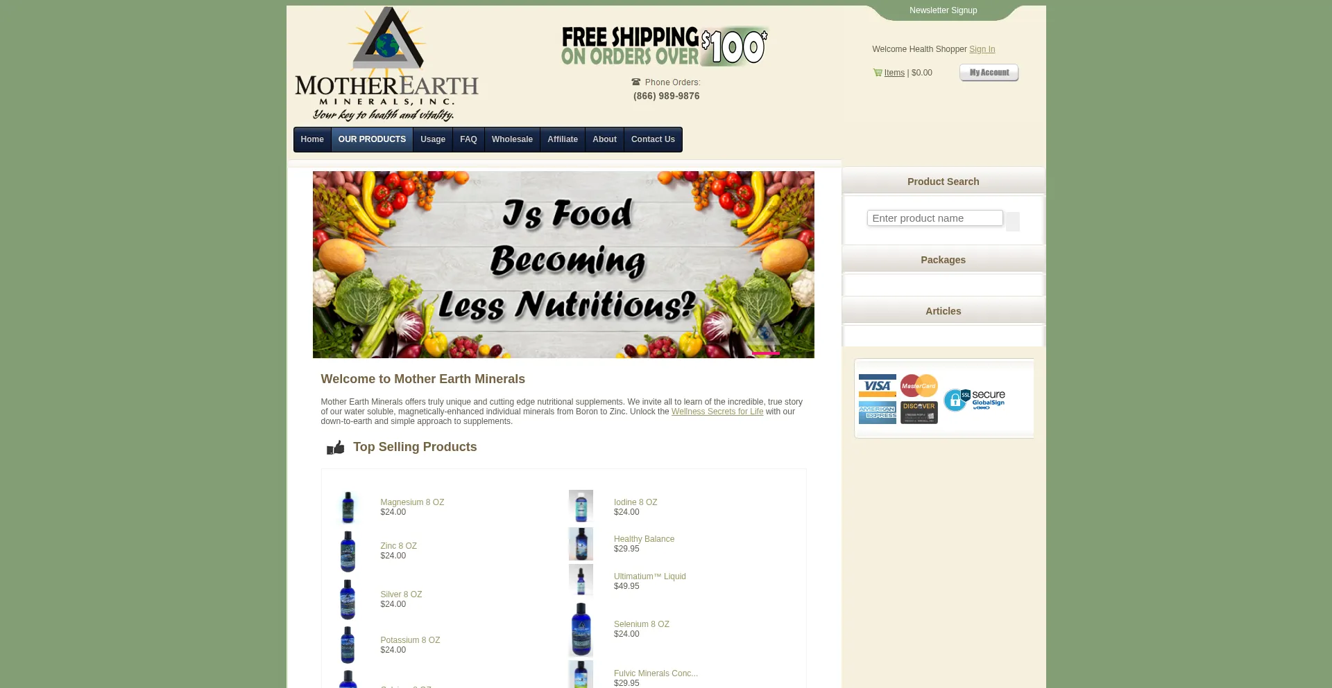 Welcome to Mother Earth Minerals - For the best in minerals and nutritional supplements. Our liquid minerals are essential for good health. Nationwide shipping is available. Located in Ogden, Utah.