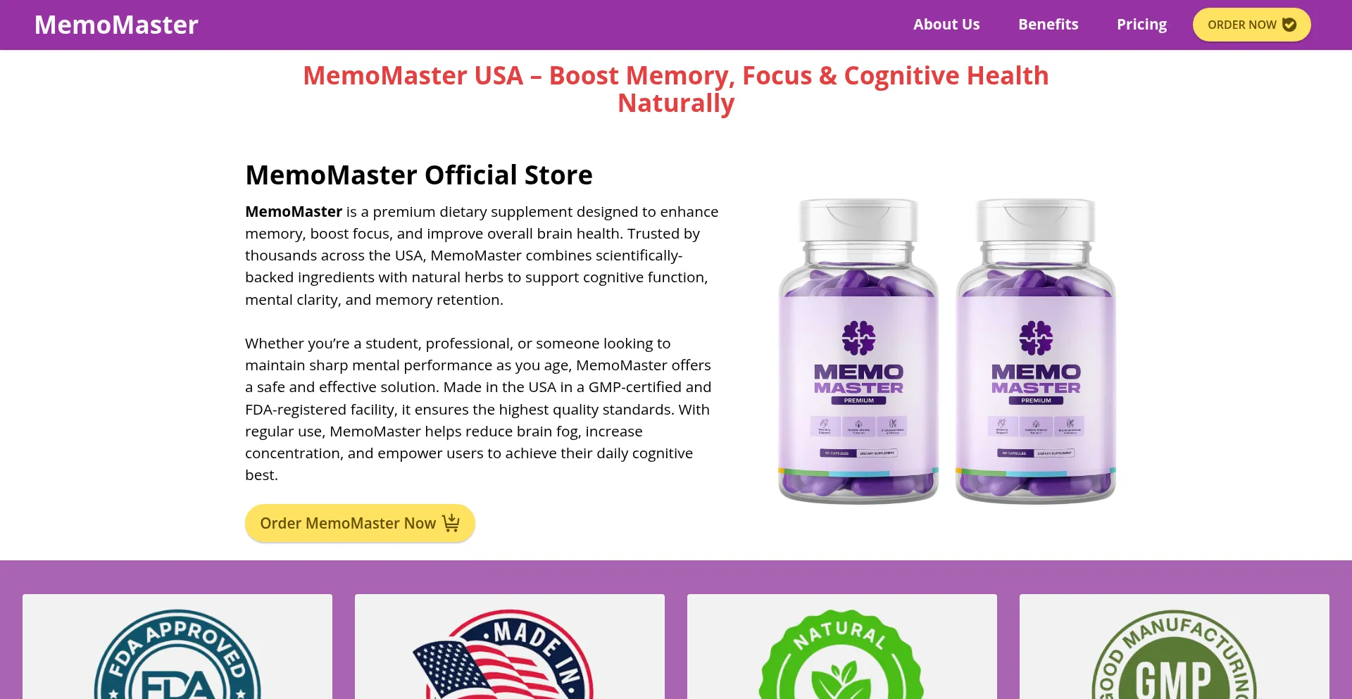 MemoMaster improves memory, focus, and cognitive performance naturally. Safe, USA-made formula for sharper thinking and long-term brain health.