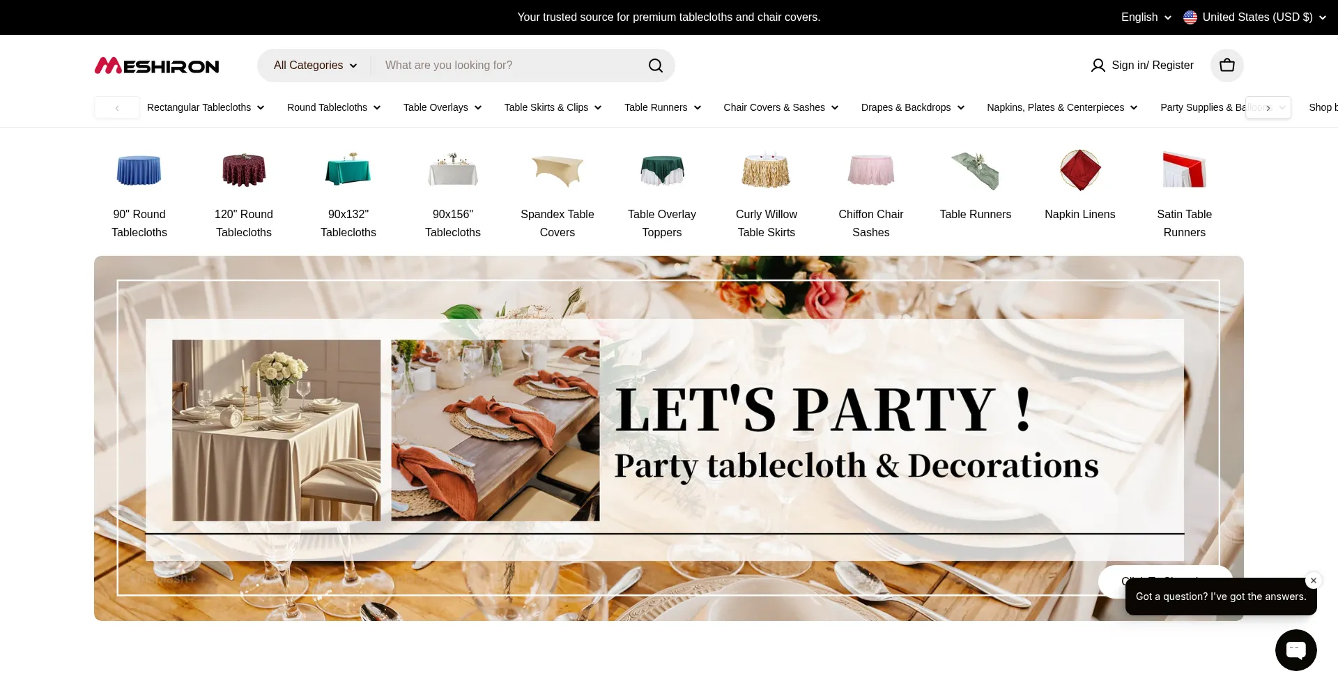 Your trusted source for premium tablecloths and chair covers.
