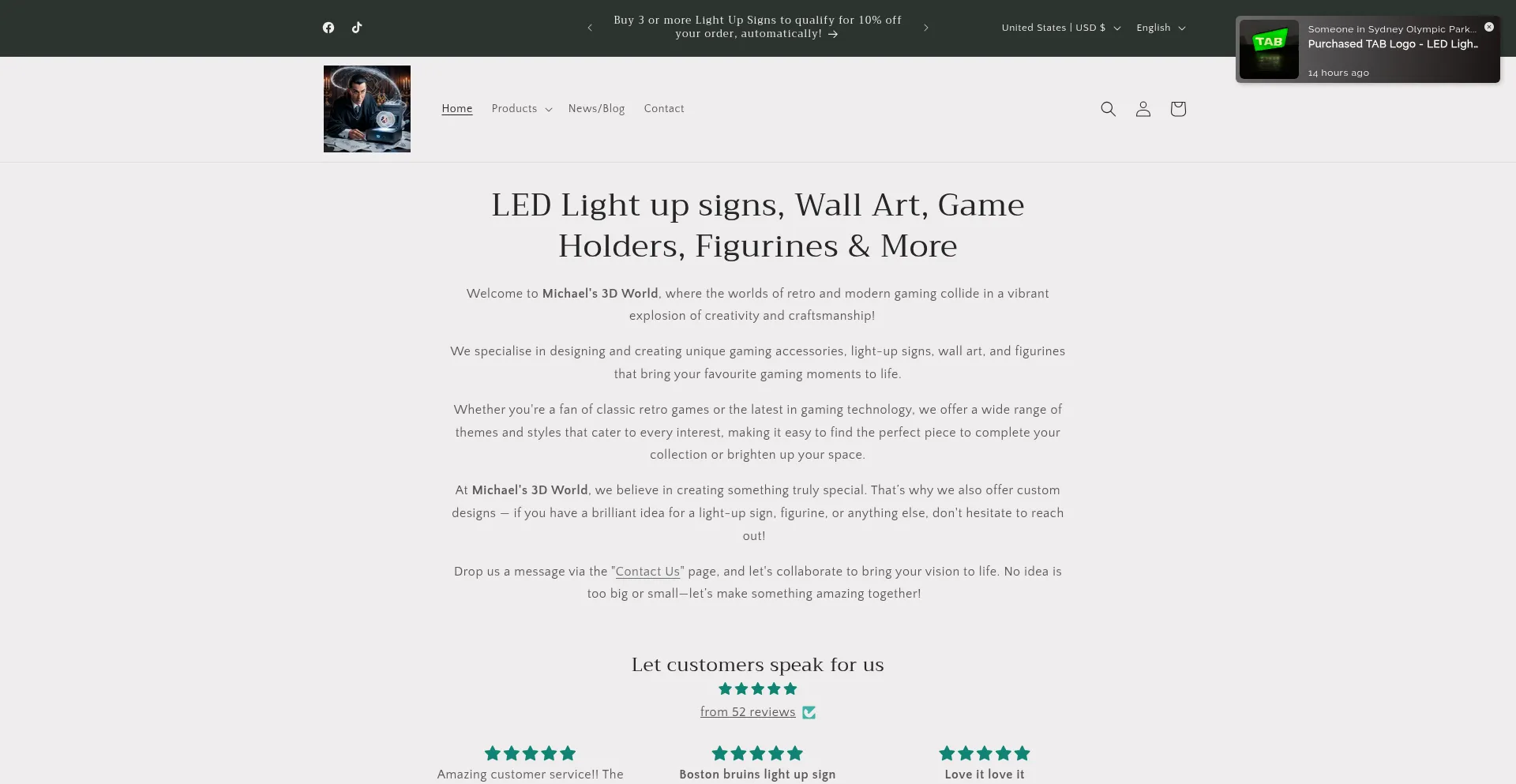 Shop LED light-up signs, custom 3D printed gaming accessories, and retro figurines. Personalised designs for gamers & retro enthusiasts.