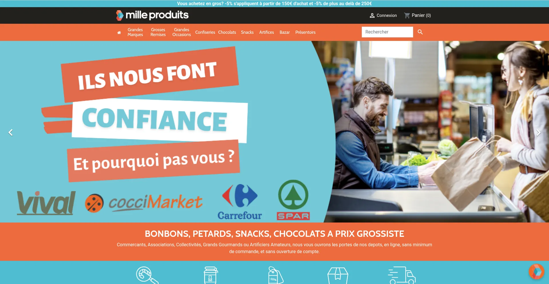 Tous vos Bonbons, Chocolats, Pétards, Snacks, Cadeaux à Prix Grossiste | Milleproduits