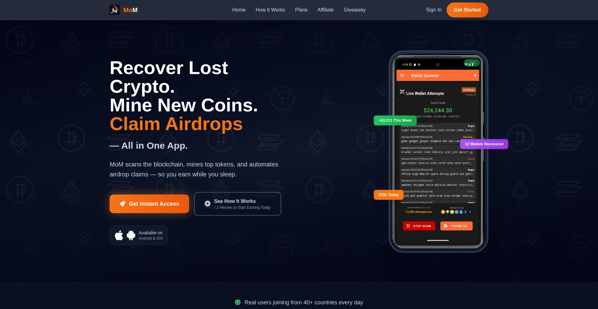 Recover lost crypto, mine coins & claim airdrops in one app. Start in 30s — no wallet needed. Secure, fast & profitable with MineOnMobile.