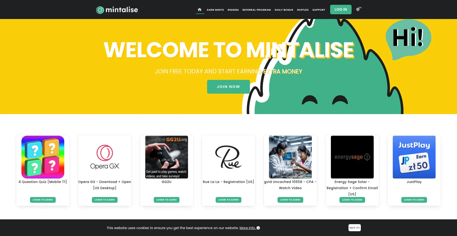 Make extra money by completing simple tasks on Mintalise. Start now and redeem your earnings as cash payments or gift cards at your choice! Join us and get money easily.
