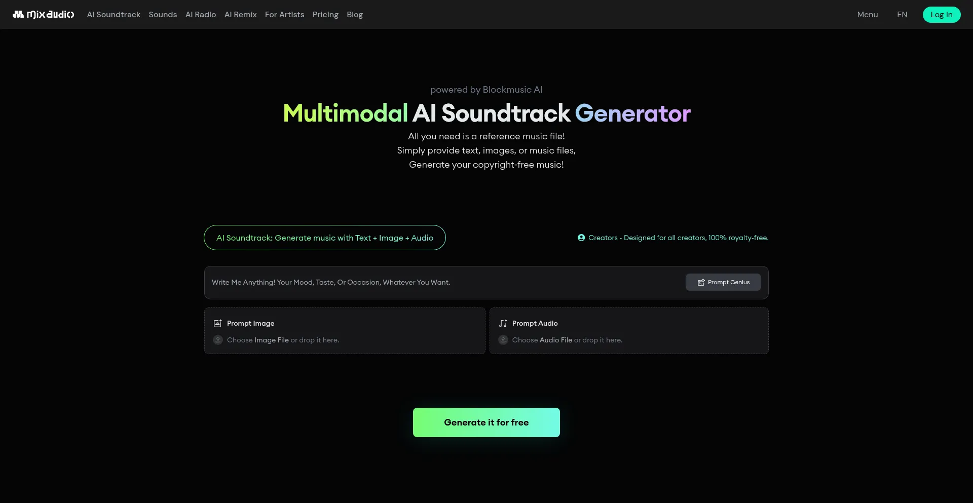 As creators, express your musical imagination with MixAudio ëŻč슀였디였, a multimodal AI music generator - BGM, REMIX, RADIO.