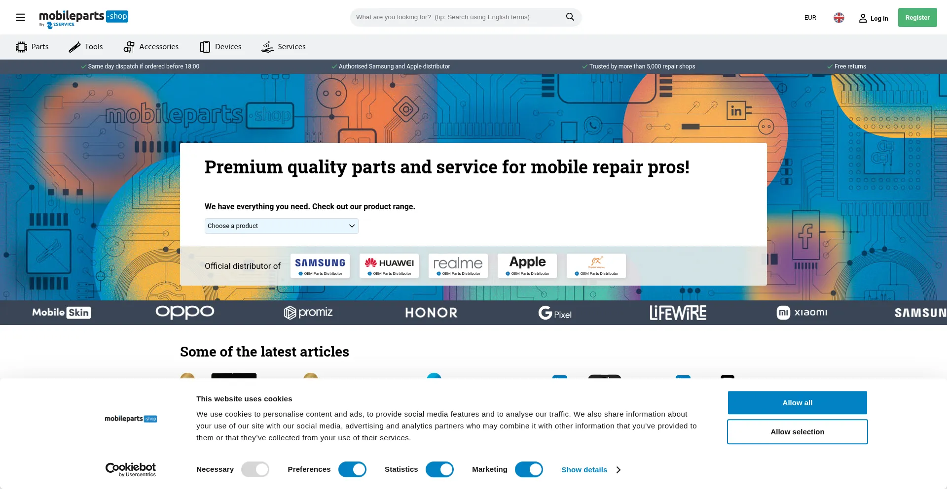 Looking for a wholesaler in mobile parts? You will find more than 300,000 original parts, tools and accessories with us for smartphone and tablet.