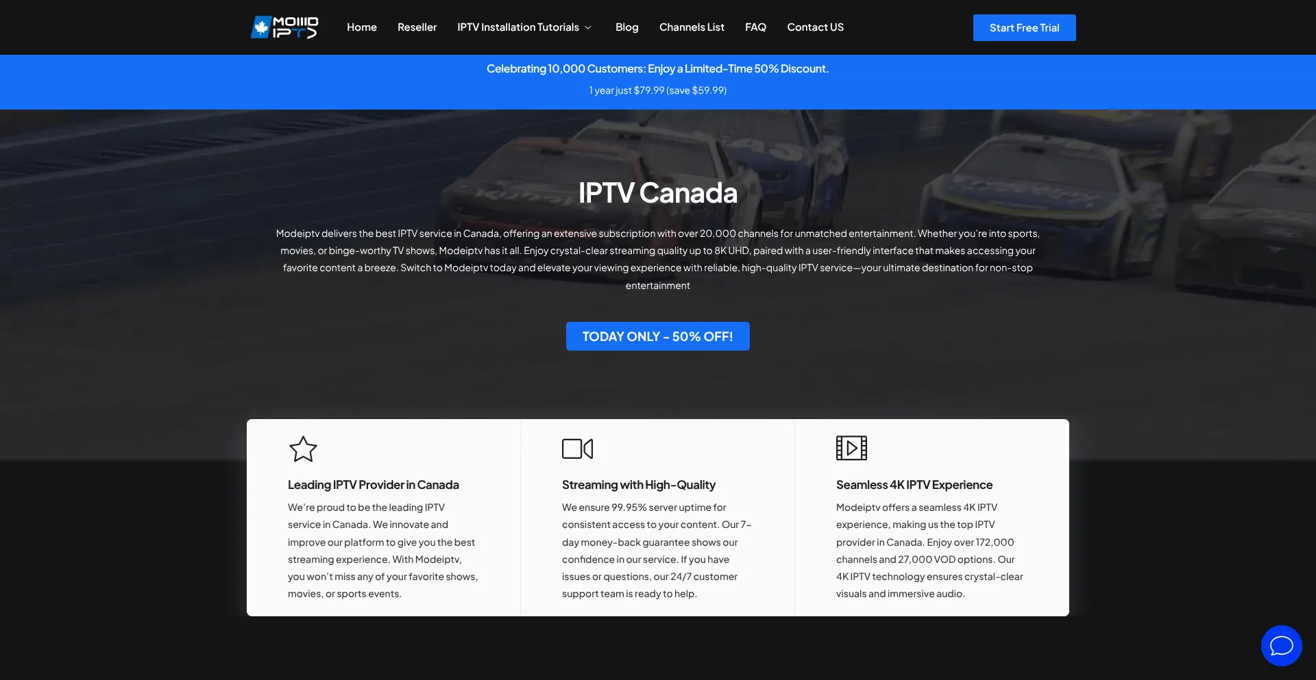 Subscribe to IPTV Canada for 4K UHD streaming with over 20,000 channels and 27,000 VOD options. Enjoy a 50% discount today!