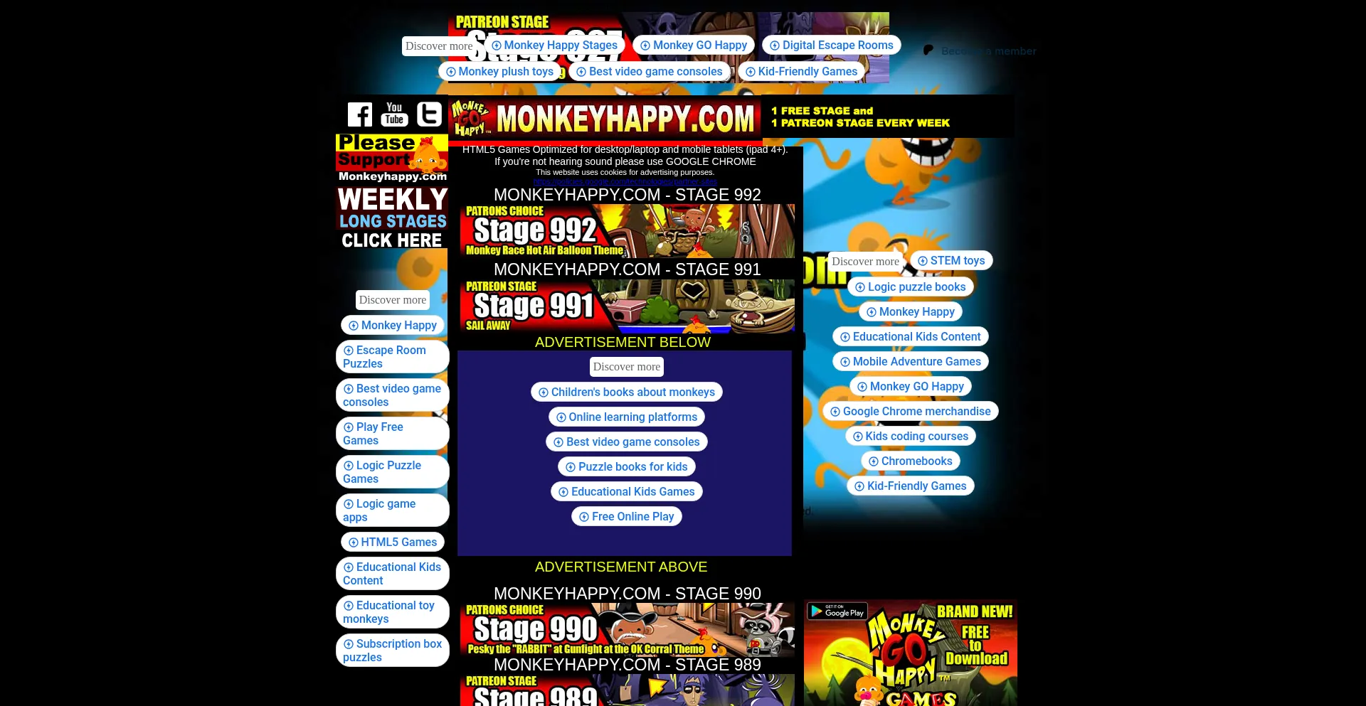 MONKEY GO HAPPY NEW STAGES -  Main Menu- Play Free Educational Kids Online Escape Games