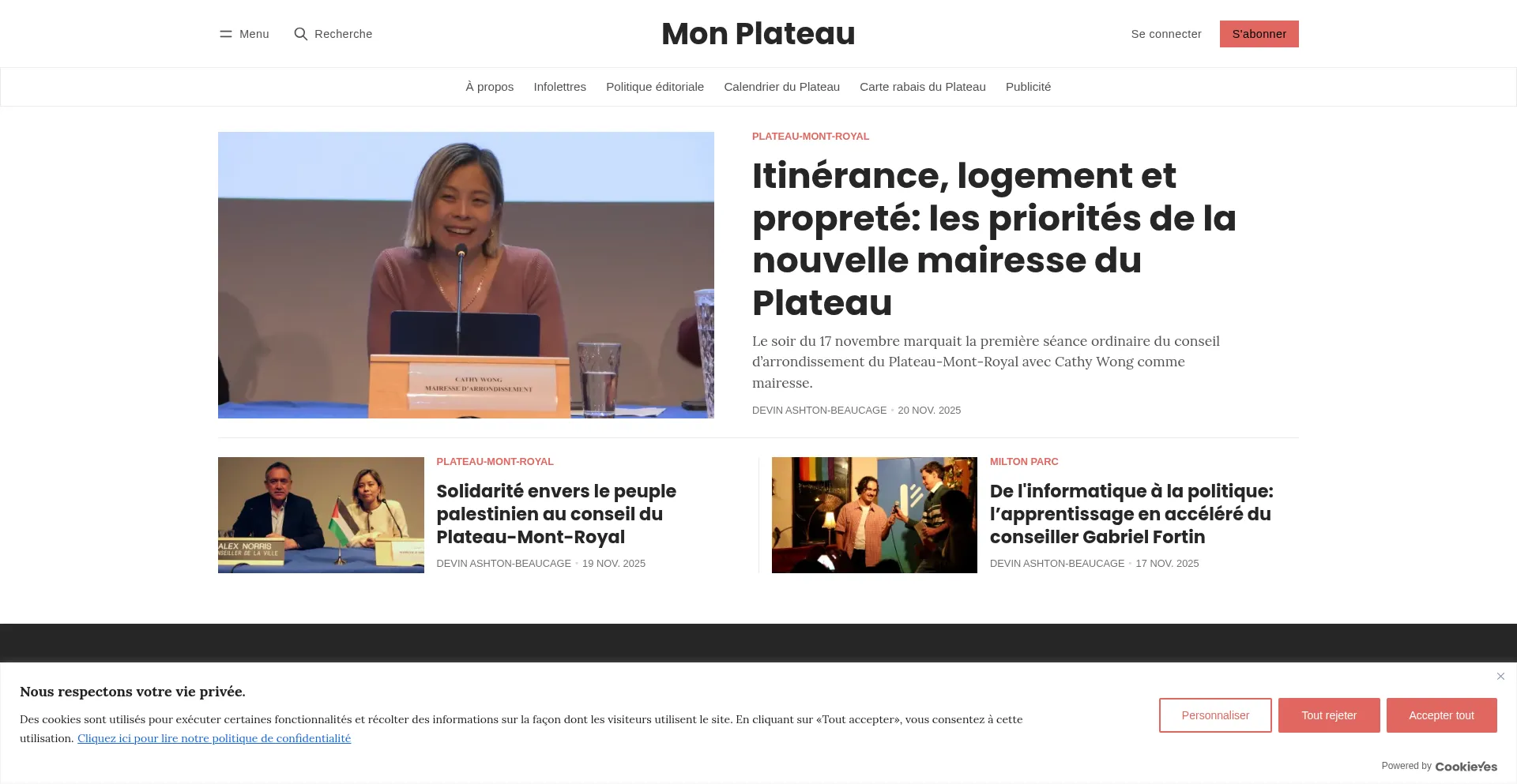Toutes les derniÚres nouvelles du Plateau, du Mile End et de Milton-Parc. Plus de 3500 abonnés aux infolettres.