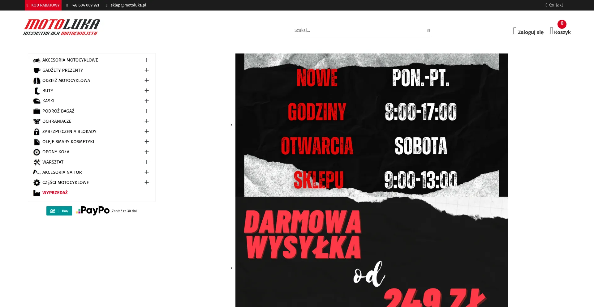 Motoluka sklep motocyklowy oferuje: częƛci do motocykli, skuterĂłw, odzieĆŒ kaski, obuwie kurtki spodnie, ochraniacze, opony oraz akcesoria motocyklowe.