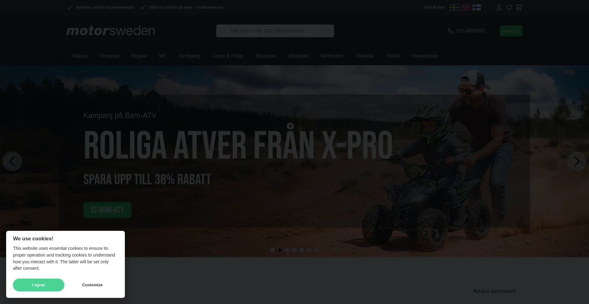 Handla Moped, Elmoped, ATV, Dirbike & Lekfordon online. Handla enkelt med Klarna. Besök oss direkt pÄ motorsweden.se