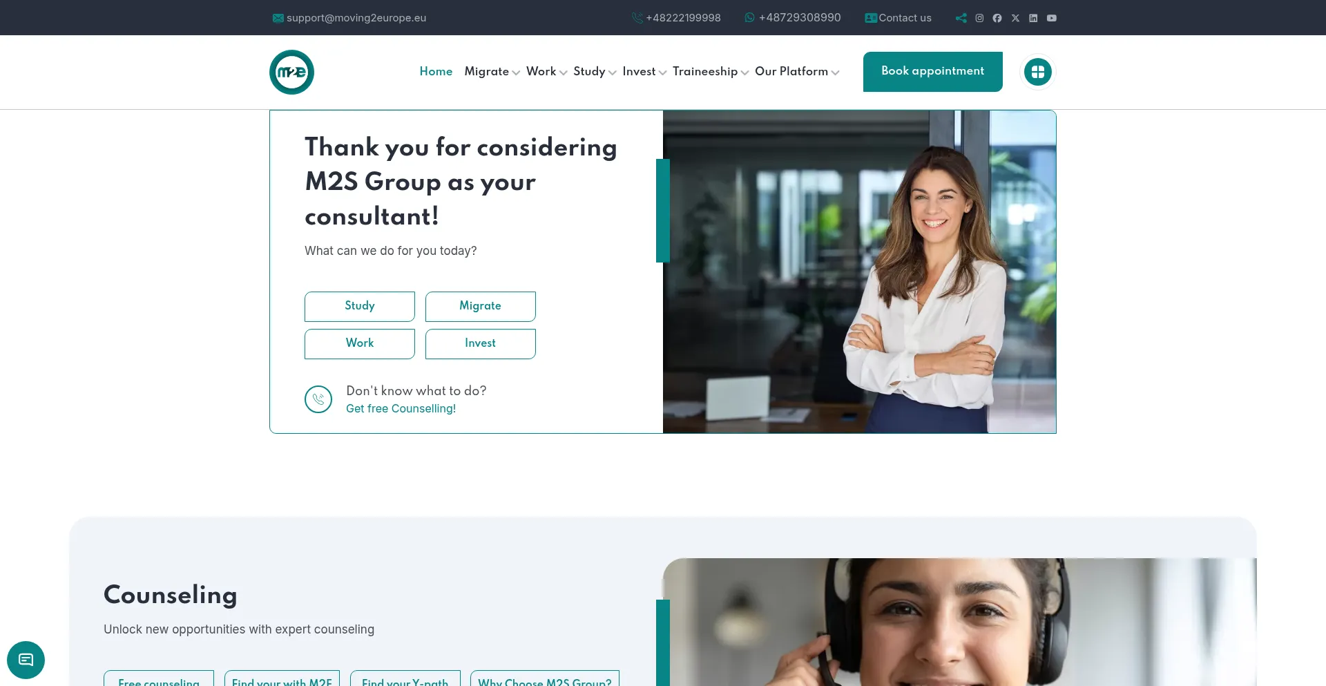 Moving2Europe, Poland’s top Immigration and Visa Consultancy services, counselled over 1 million people in 4+ offices in major Polish cities.
