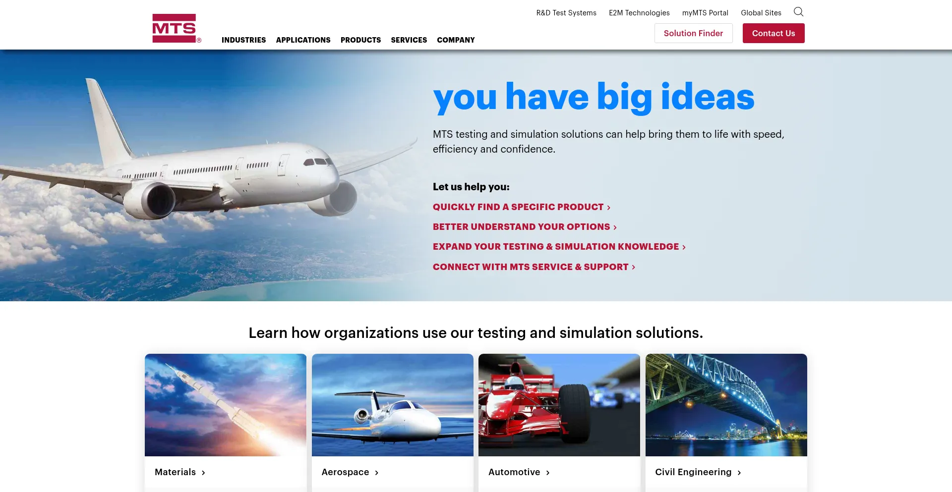 Testing & simulation systems for product design, manufacturing and research, used in automotive, aerospace, biomedical, energy, & civil engineering. Find out more.