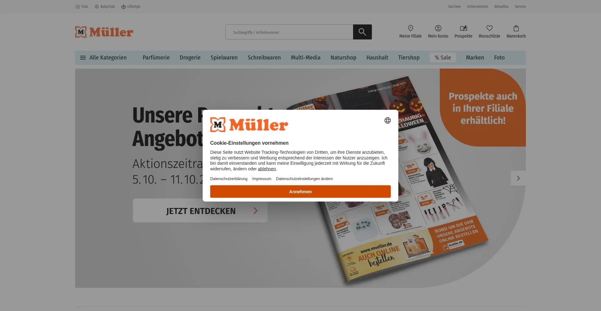 Le site web implémente des mécanismes de consentement aux cookies en conformité avec les réglementations de confidentialité telles que RGPD ou CCPA. Cela démontre que mueller.de adhÚre aux standards de protection des données et fournit aux utilisateurs un contrÎle sur les pratiques de collecte de données personnelles.