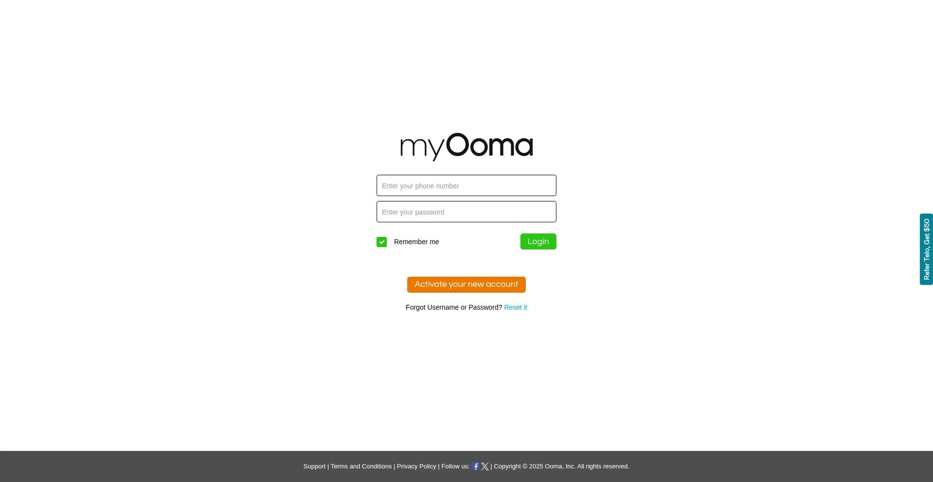 My Ooma - Login