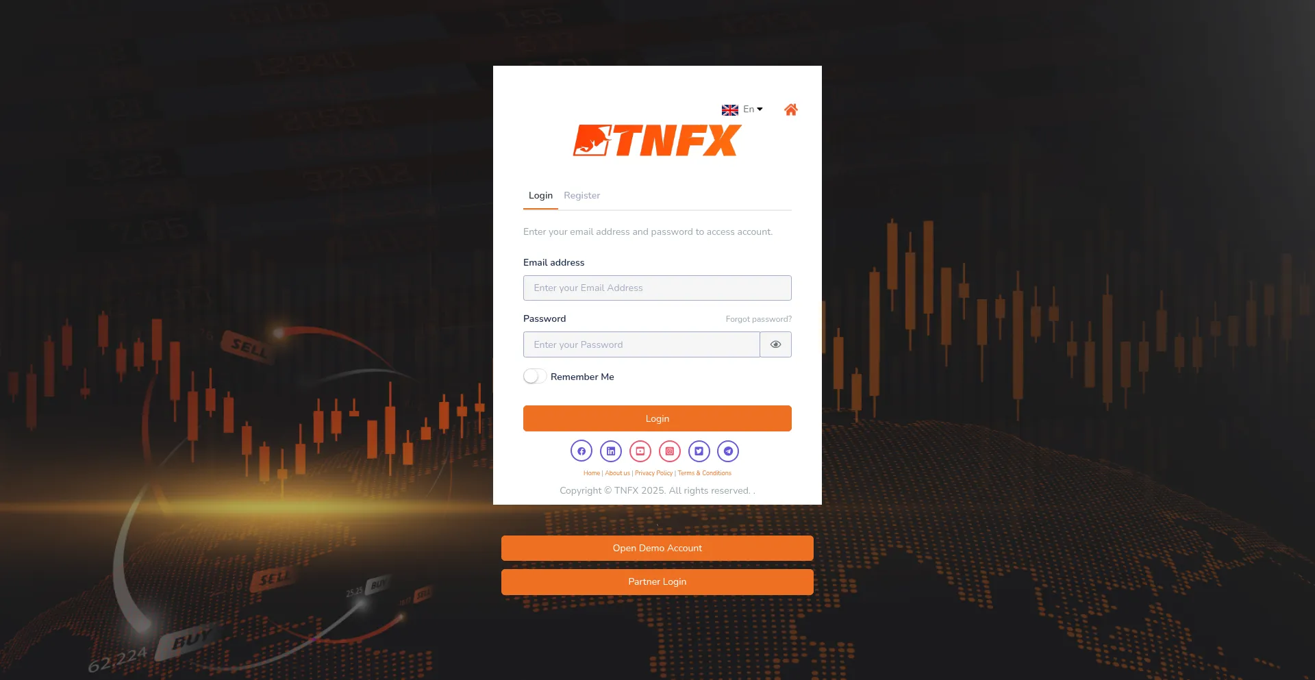 La présence de liens de médias sociaux sur le site web indique que my.tnfx.co maintient des comptes officiels sur les médias sociaux, ce qui est un signe positif de crédibilité et d'engagement.
