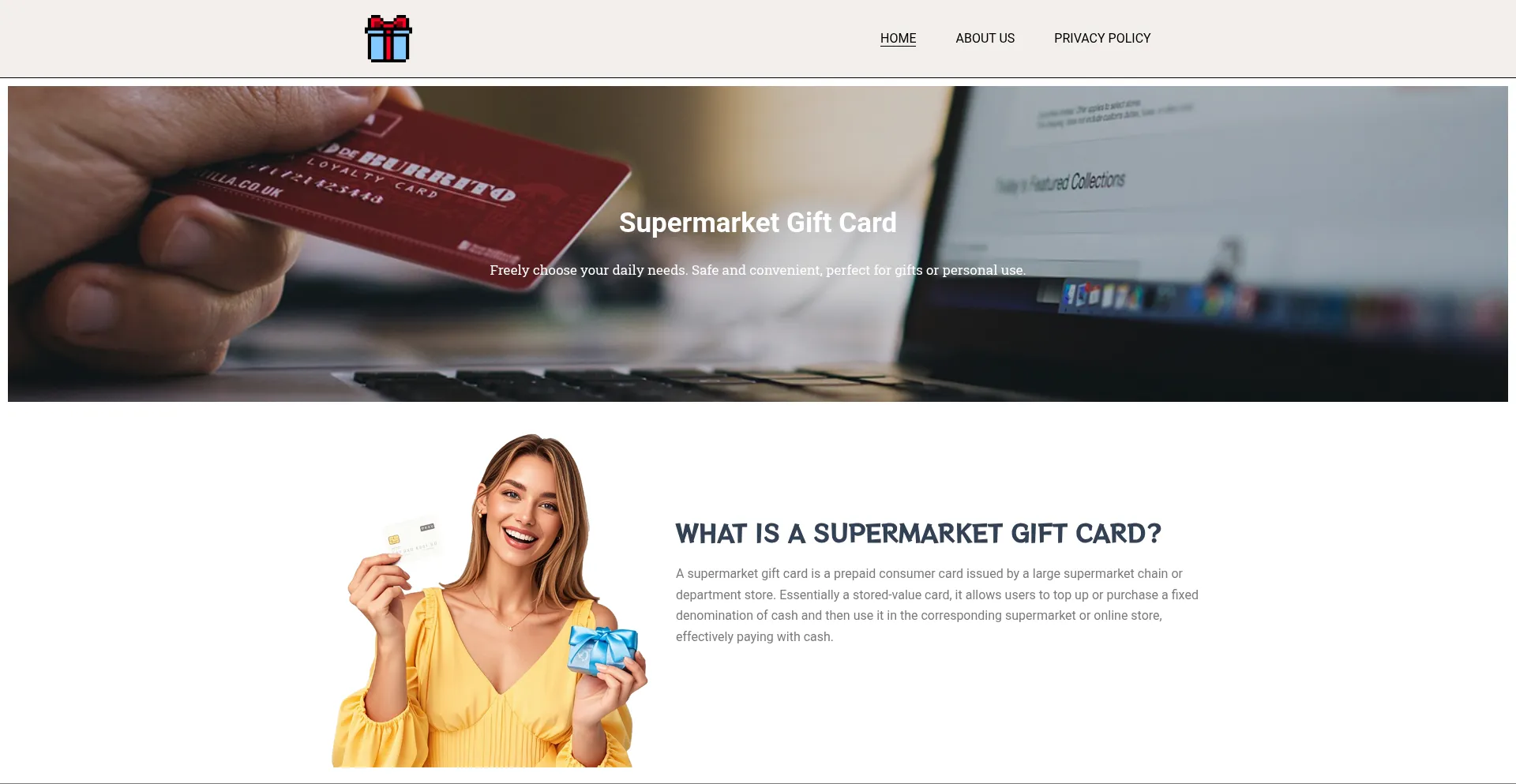 A supermarket gift card is a prepaid consumer card issued by a large supermarket chain or department store.