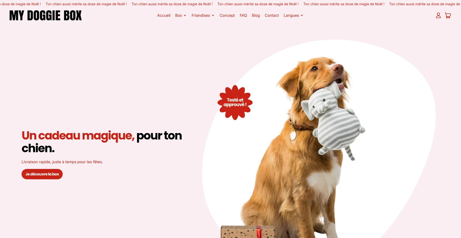 Des box soigneusement conçues, avec des jouets essentiels pour le bien-ĂȘtre de votre chien ou chiot, livrĂ©es directement chez vous ! SimplicitĂ© et QualitĂ©.
