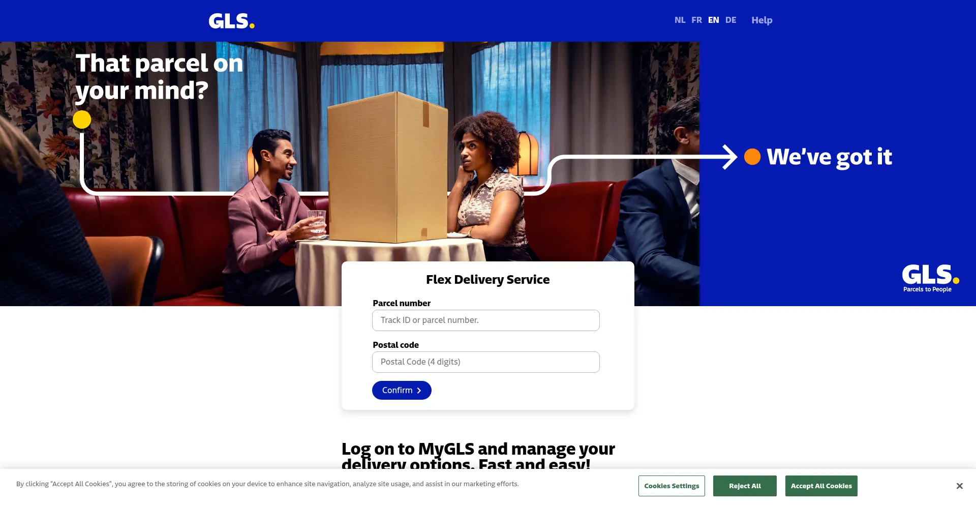 Fill in your parcel number and postal code and manage your delivery options right now!