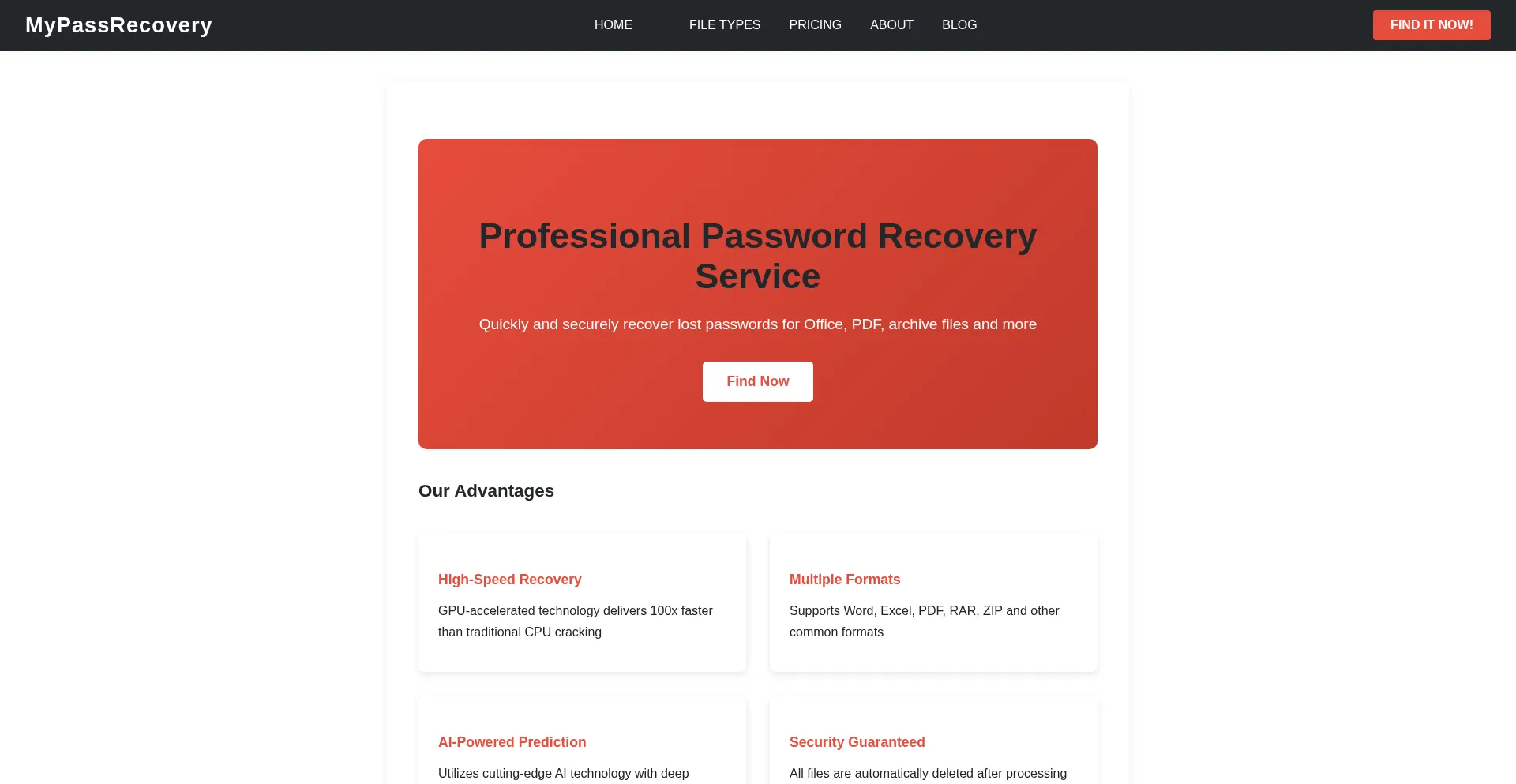 Based on Hashcat, this website provides password recovery services for Office documents (such as Word, Excel, PPT), PDF files, and compressed archives (including RAR, ZIP, 7z).