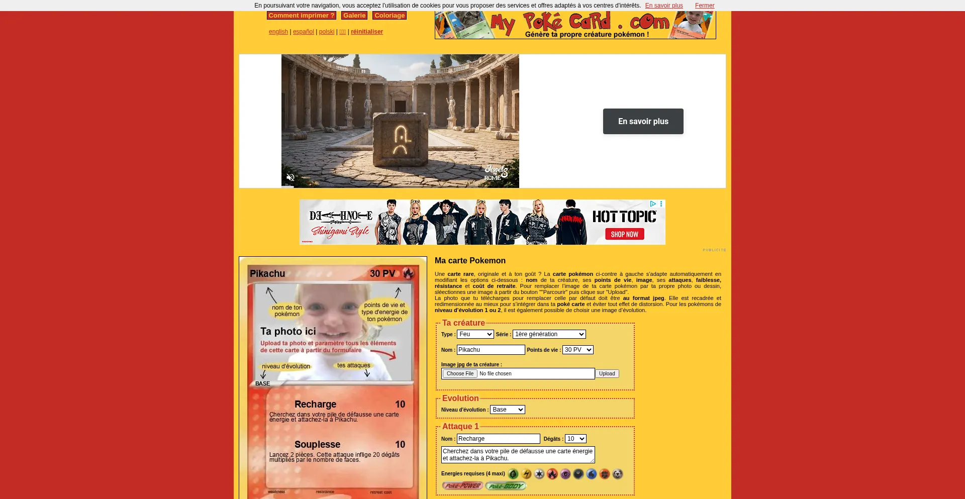 Ma carte pokémon à imprimer - Image de créature pokémon personnalisée avec ma photo et mes attaques