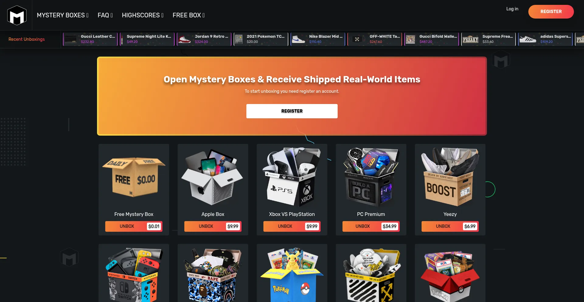 Open Mystery Boxes online with a guaranteed value, right from the comfort of your own home. We will ship the items you win directly to your doorstep!