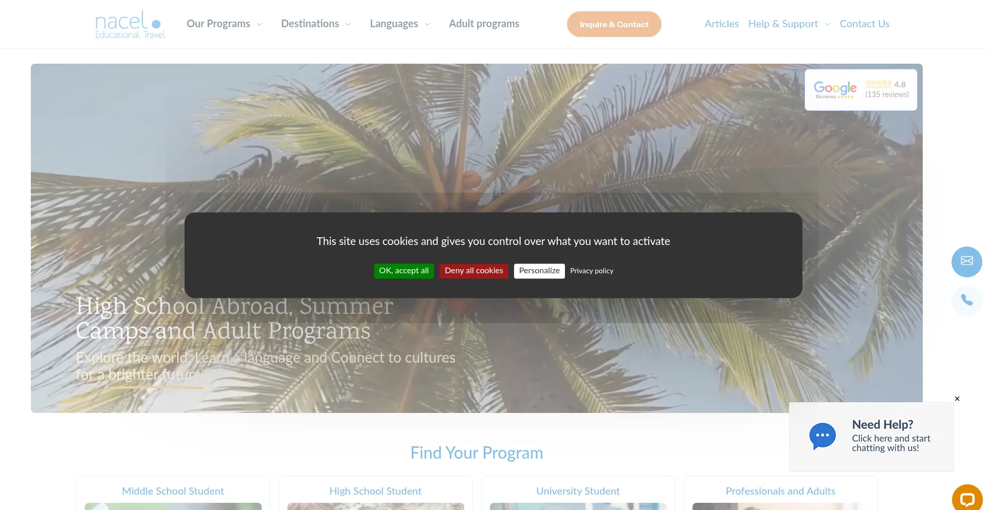 High School Exchange Study Abroad, Summer Camps, Language Courses with Nacel. Established in 1957, we have more that 60 years of experience with educational language travel. Thi...