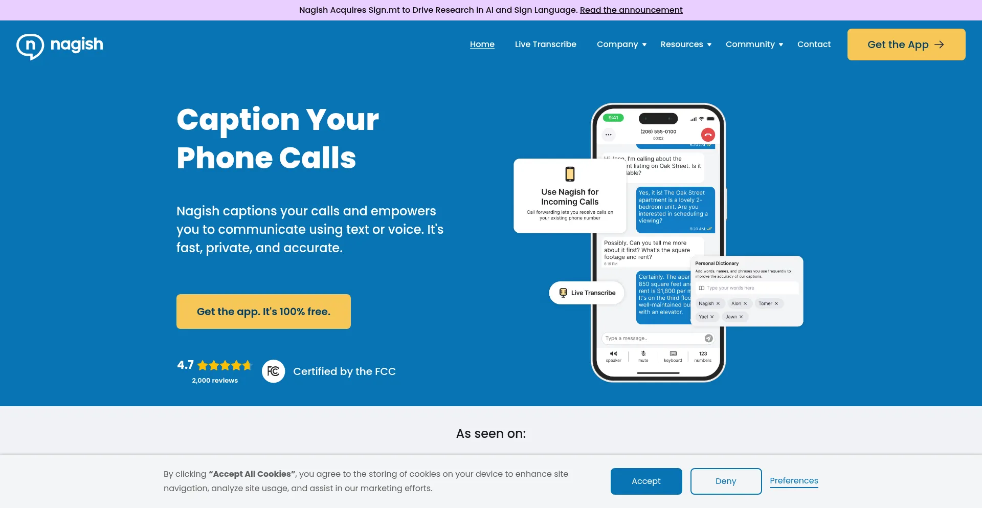Nagish captions your phone calls and empowers you to talk using text or voice. It's fast, private, and free. Download Nagish app today!