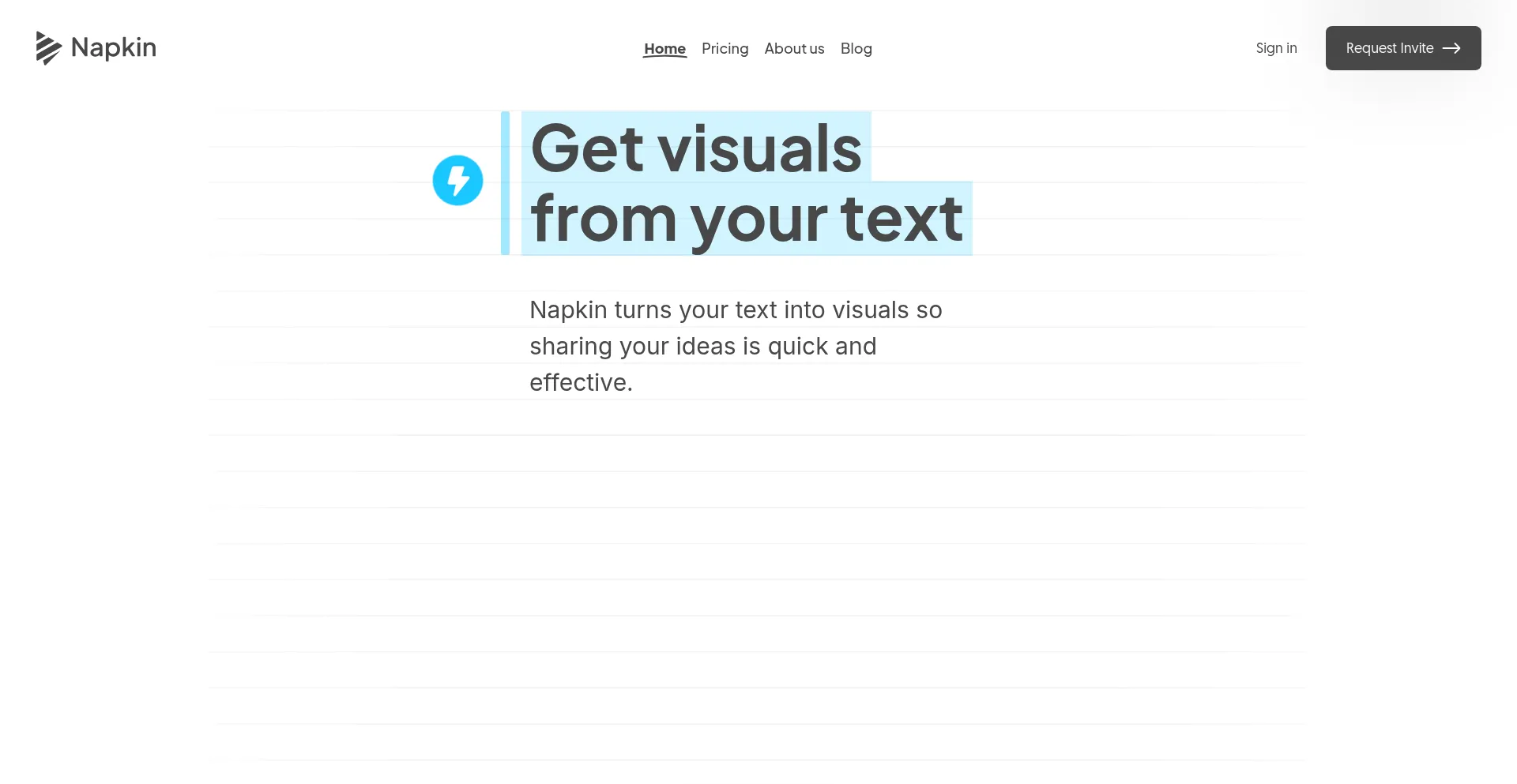 Just type, copy-paste or generate your text and Napkin will instantly transform it into insightful visuals. Make your communication more effective with Napkin.