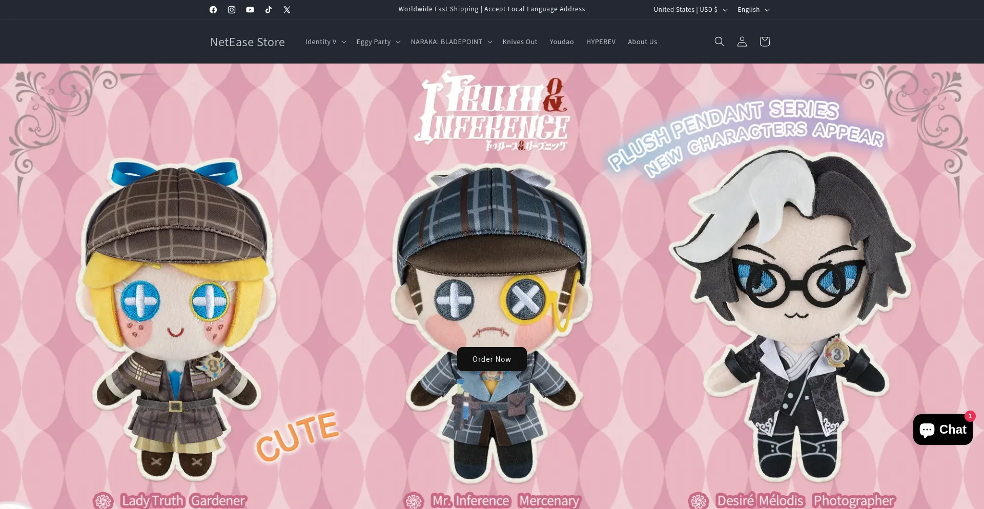 Welcome to the Official NetEase Store! Discover a treasure trove of NetEase goodies, including Identity V, Eggy Party, NARAKA: BLADEPOINT Official Merch, incredible HYPEREV gami...