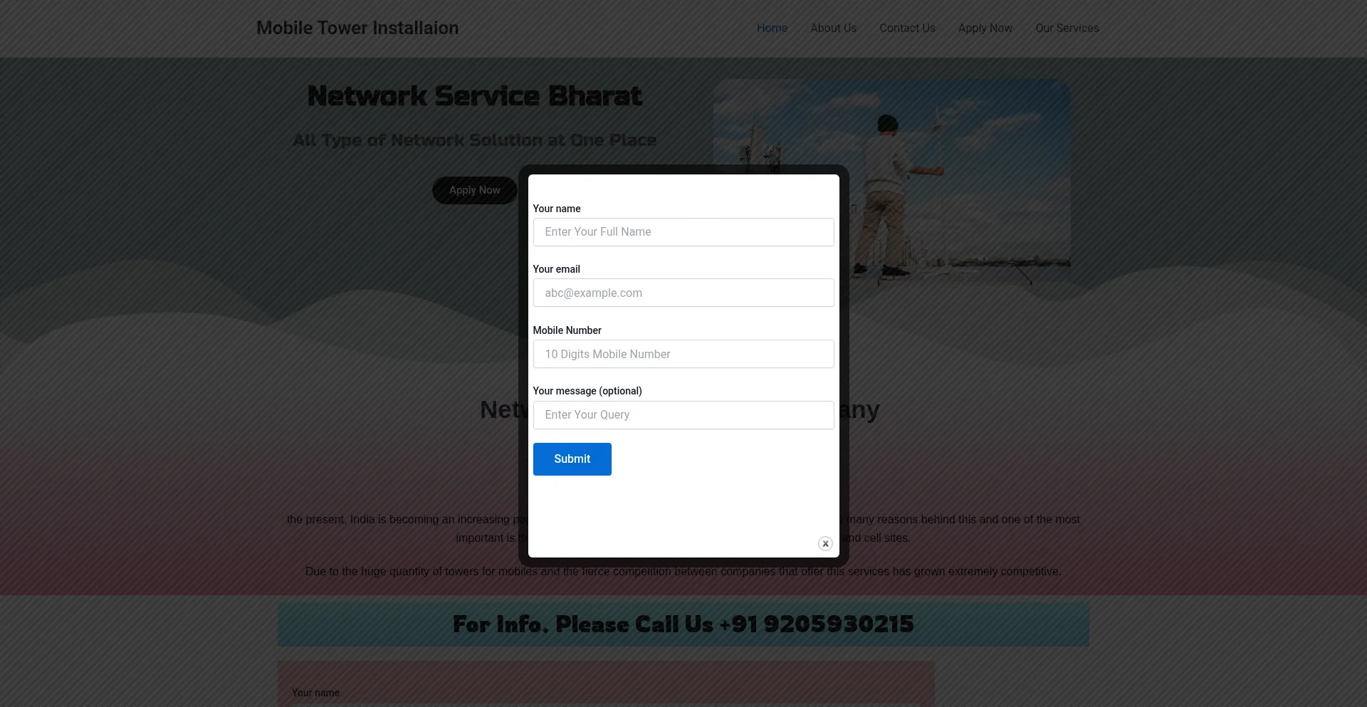 Mobile Tower Installaion – We are offering Mobile Tower Services Like New Tower Installation, Repairing and Maintenance