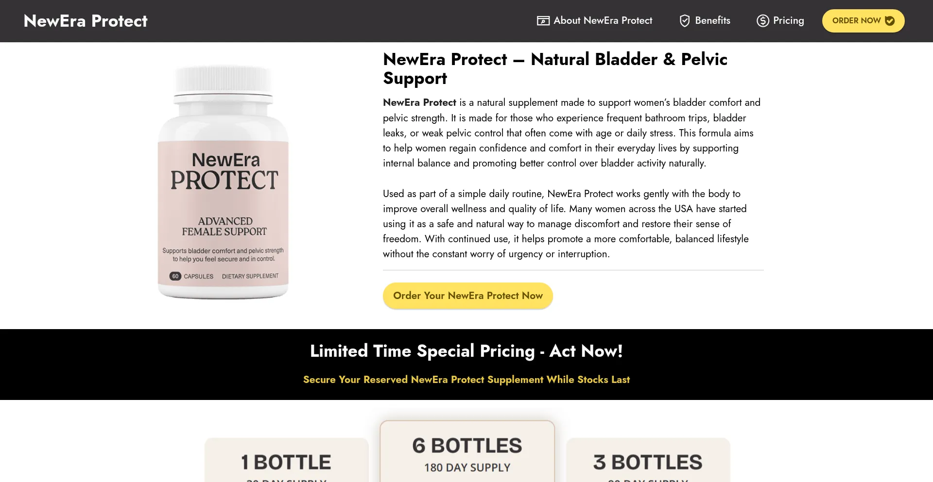 NewEra Protect is a natural supplement supporting women’s bladder wellness & urinary health, enhancing pelvic strength and internal balance for daily comfort.
